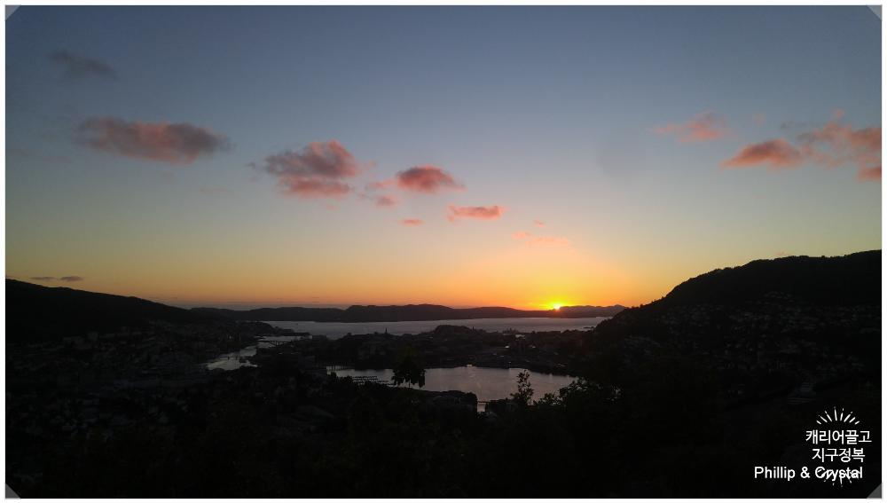 베르겐 너머로 해가 지는 모습이 장관이었답니다.
