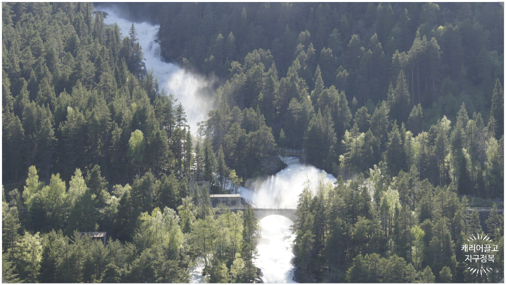 6월 노르웨이에는 산 위의 눈이 녹아내린 물로 폭포가 수도 없이 생깁니다. 이 세상에 이런 곳이 얼마나 있을까요? 산 위에 눈이 얼마나 있기에 이렇게 많은 물이 내려오는 건지. 이건 눈으로 봐야 믿을 수 있습니다.