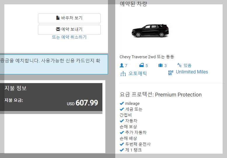 결국, 처음 알게 된 사이트에서 렌터카 예약을 하게 되었는데,