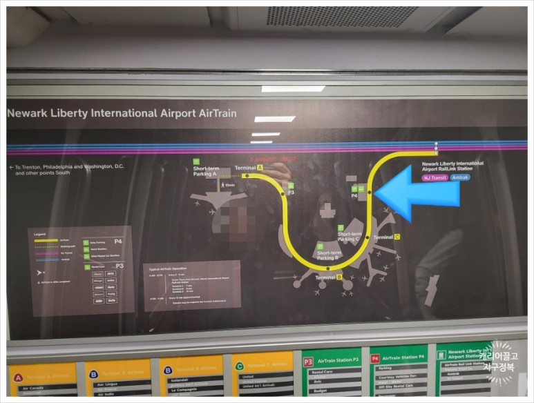 P4 주차장 역은 뉴웍 공항 기차를 타고 이동해야 하기에, 아래 사진의 Air Train을 타러 가야 합니다.