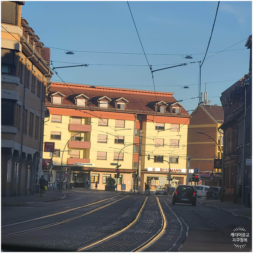 독일은 도심에 트램이 다닙니다. 도로 바닥에 기찻길에 깔려있고, 하늘에는 전깃줄이 따라갑니다.