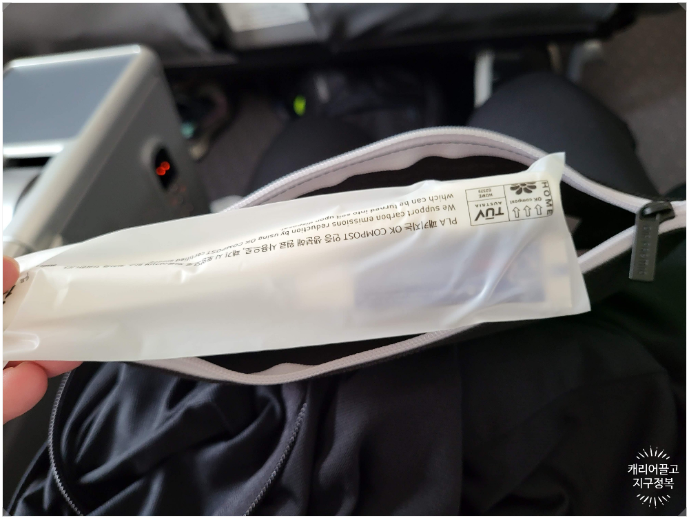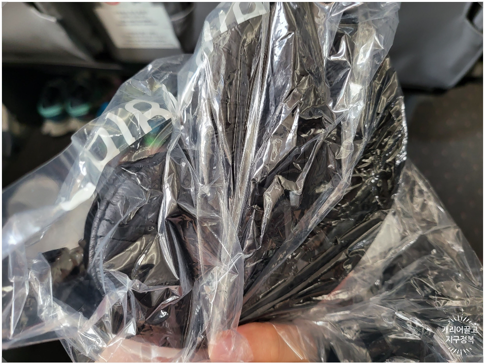 기본적으로 1회용 실내화와 어메니티가 들어있는 검은색 작은 가방이 제공되었습니다.