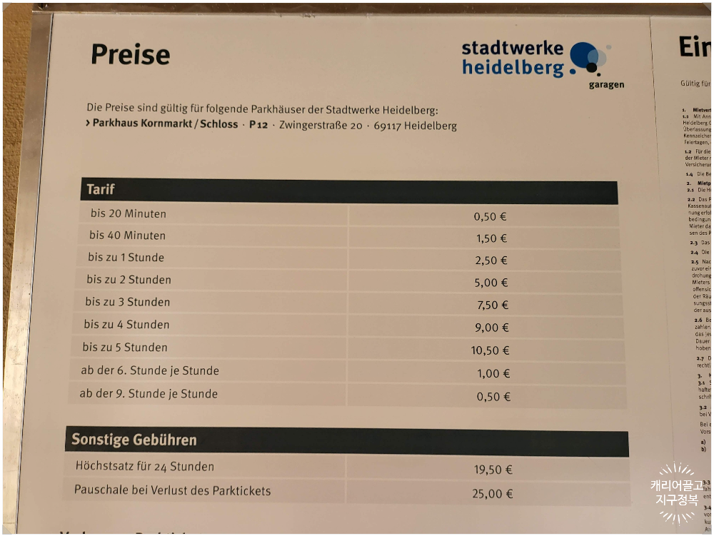 다시 돌아와, 주차비는 1시간에 2.5유로입니다.