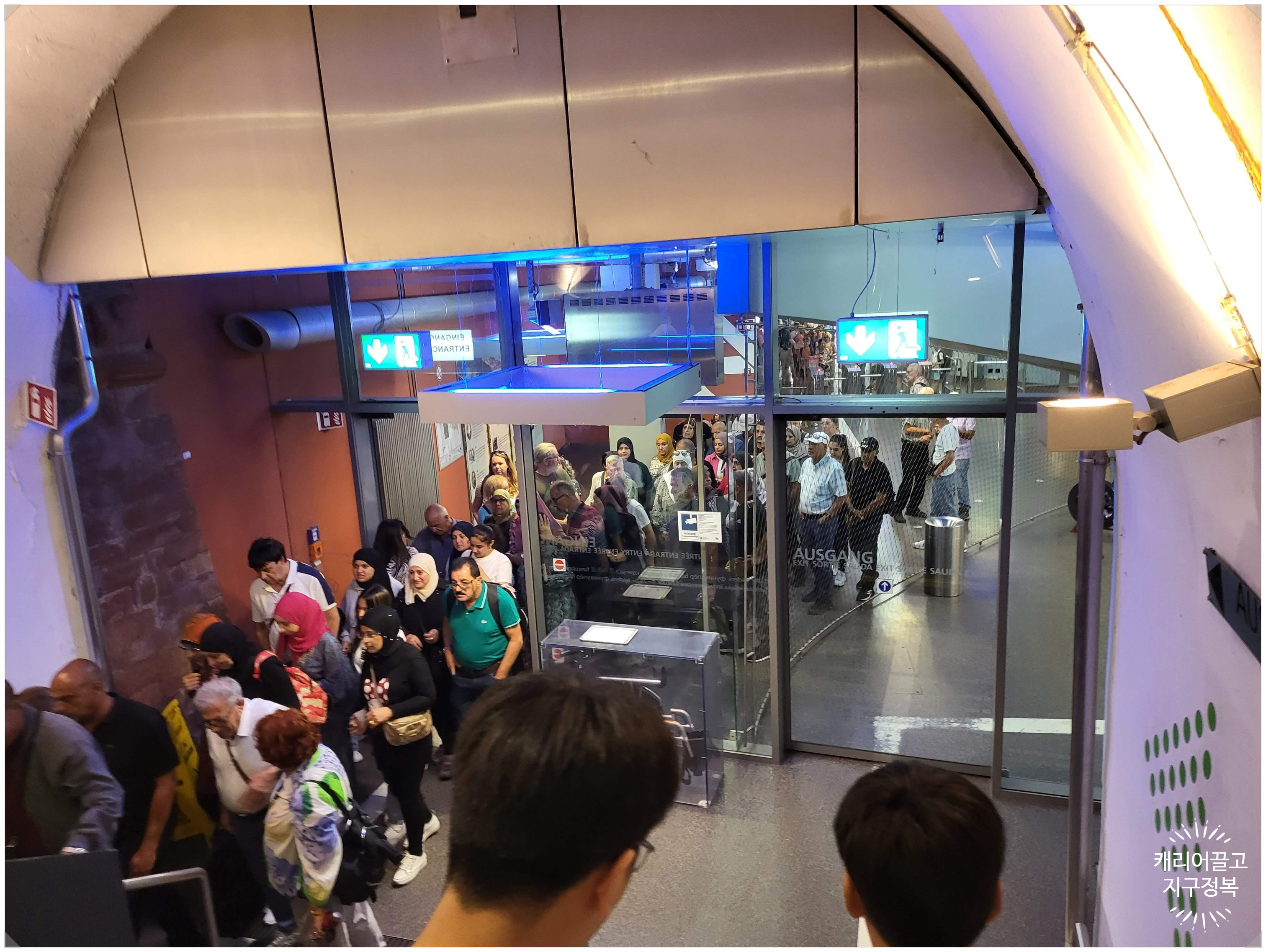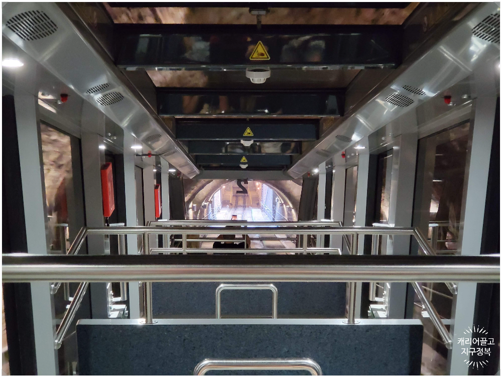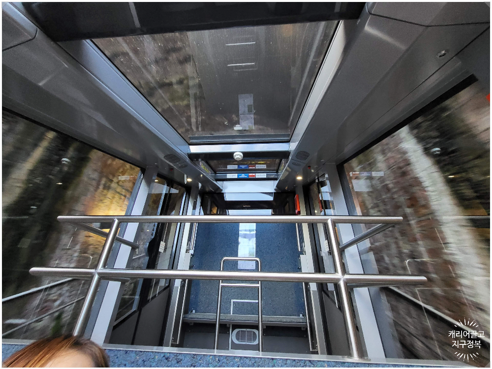 캐끌지정 가족은 파란색 구간 티켓만 사 와서, 더 이상 올라가지 못하고 내려갑니다.