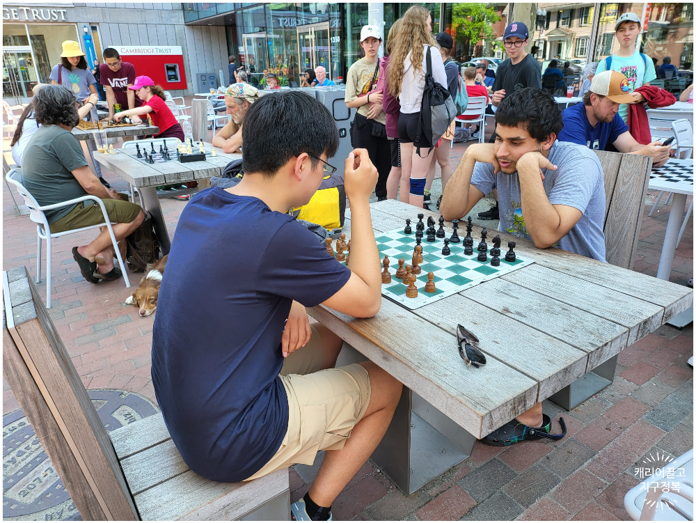 하버드대학교 길 건너에서 벌어지는 체스 한판