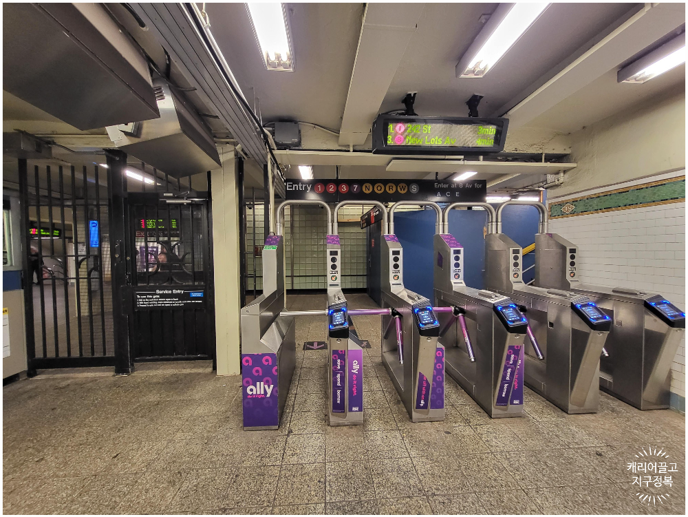 뉴욕 지하철은 탈 때만 표를 인식하고, 나갈 때는 그냥 나가면 됩니다.