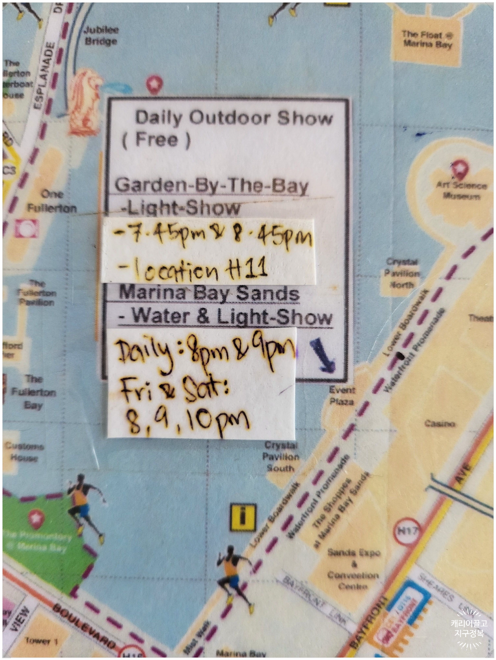 자, 우선 마리나 베이 샌즈 물, 빛(Marina Bay Sands Water & Light Show) 쇼는 아래 위치에서 합니다.