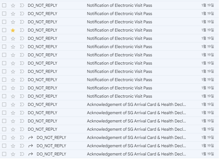 "Acknowledgement of SG Arrival Card & Health Declaration submission"라고 날아오는 email도 있는데,