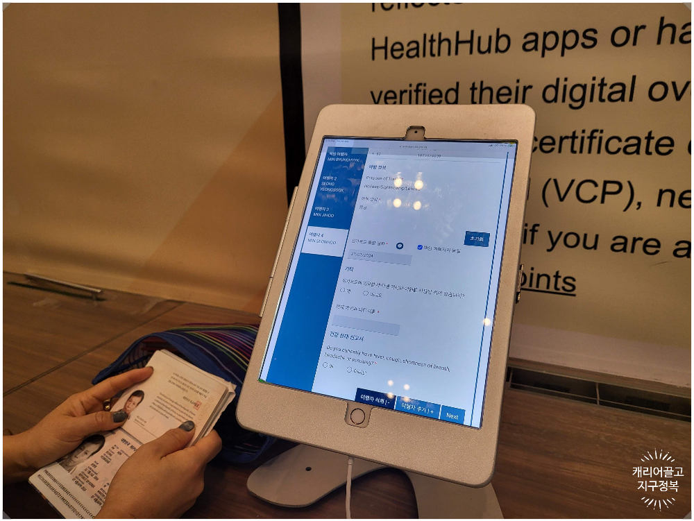 다행히 그 옆에는 전자 입국신고서를 쓸 수 있도록 패드 기기가 두 개 있었습니다.