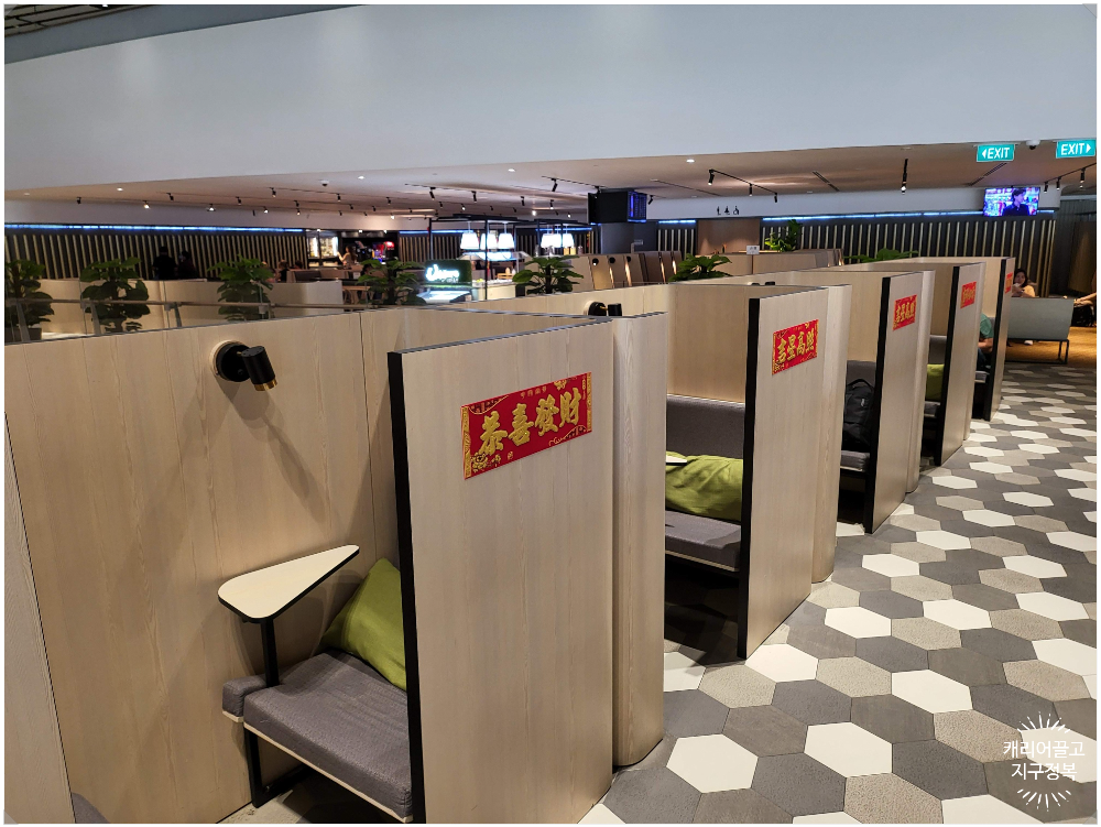 싱가포르 창이공항 터미널 4에도 프리미엄 라운지가 있습니다. 라운지는 한 곳인데, 이름은 3개로 SATS, PLAZA, BLOSSOM의 이름을 가진 라운지입니다. 입구부터 중국풍이 느껴지는데 음식 맛들도 중국향이 강합니다. 대신 쉴 수 있는 좌석이 많이 있습니다. 충전 포트도 많이 있습니다.