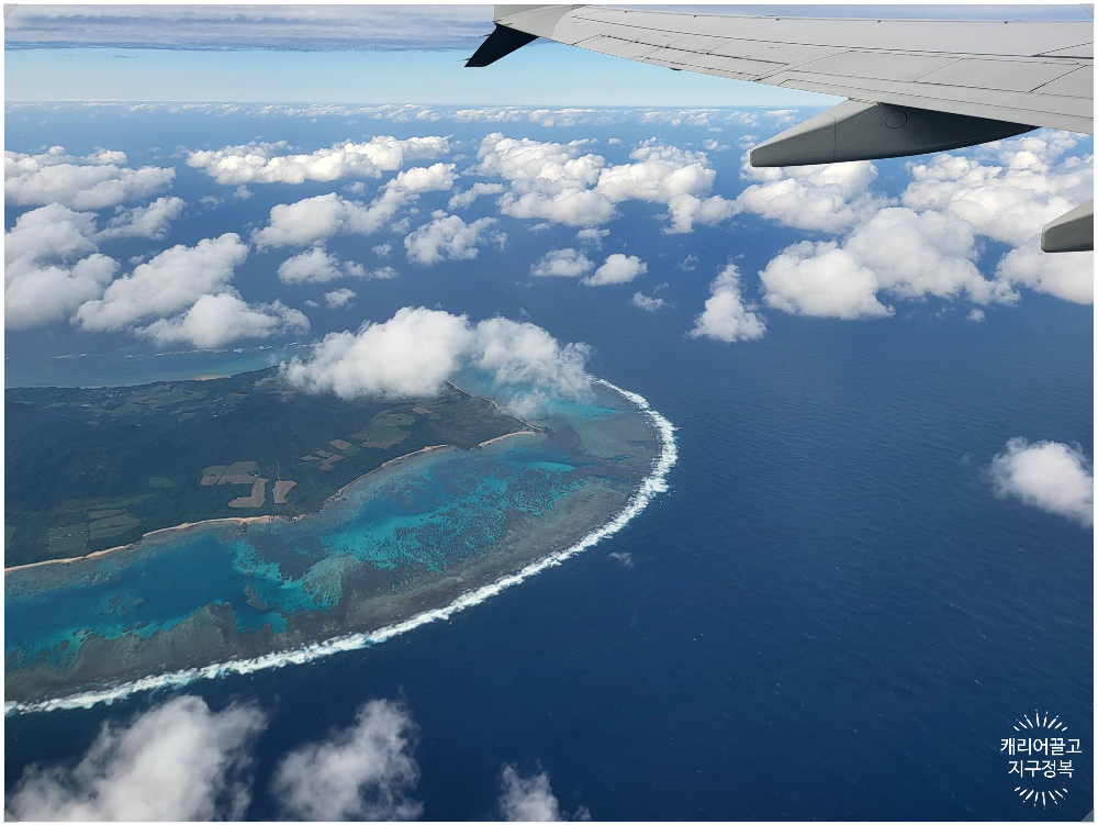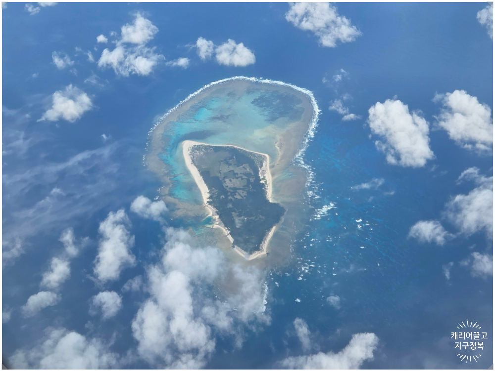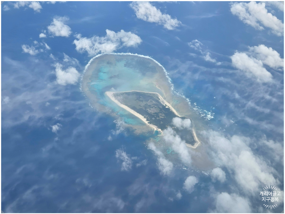 흡사 괌이나 사이판, 혹은 몰디브 상공이라고 해도 믿을 법한 에메랄드빛 바다.