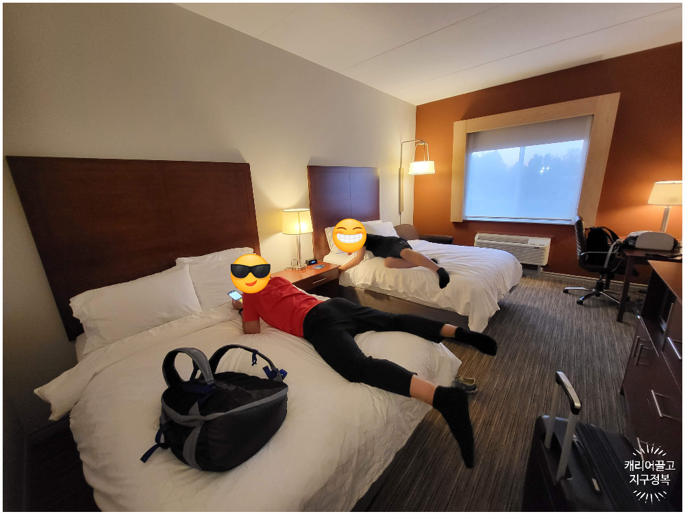 캐나다 천섬이 있는 가나노크, 킹스턴 옆인데, 홀리데이인 호텔이 있습니다. 새 호텔이고 방도 커서 4인 가족이 지내기에 아주 가성비 좋은 호텔이었습니다. 여기는 세탁기와 건조기도 있어서 그간의 빨래를 해결할 수 있는 호텔이었습니다.