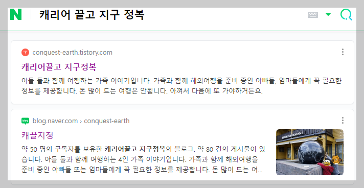 검색에서 두 개의 블로그가 다 노출되는 특이한 상황이 되어 버렸습니다.