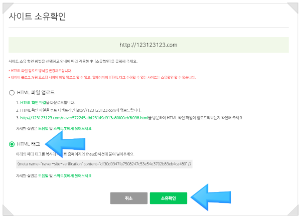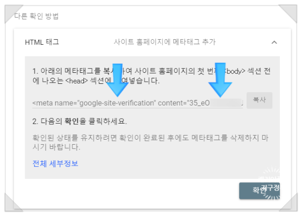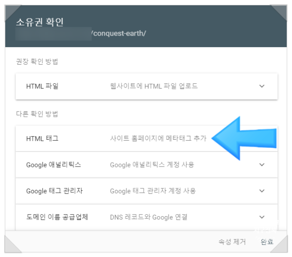 아까 하셨던, "소유권 인증"을 클릭하시면 아래처럼 "소유권"을 확인합니다.