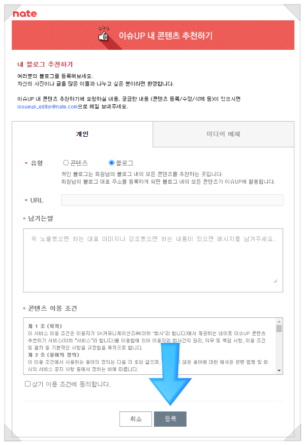이렇게 내용을 작성한 후 등록을 누르면 끝입니다.