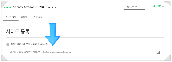 그런 후, 아래 그림에서 오른쪽 란에, 본인의 블로그 주소를 등록하시면 됩니다.