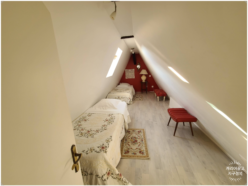캐끌지정이 사용한 방은 지붕 위에 있는, 사진에는 보이지 않는 제일 꼭대기 층이었습니다.