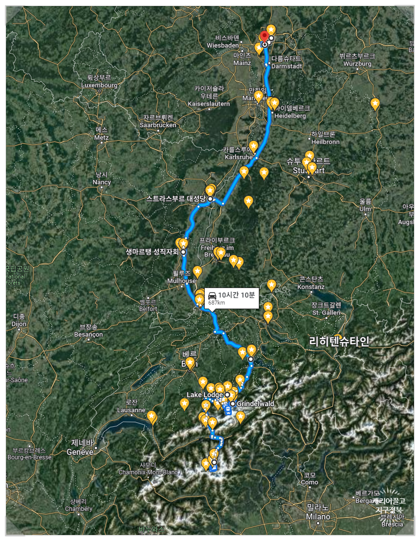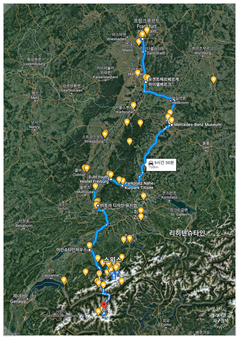 2. 체르마트에서 프랑스를 거쳐 프랑크푸르트까지 올 때 경로
