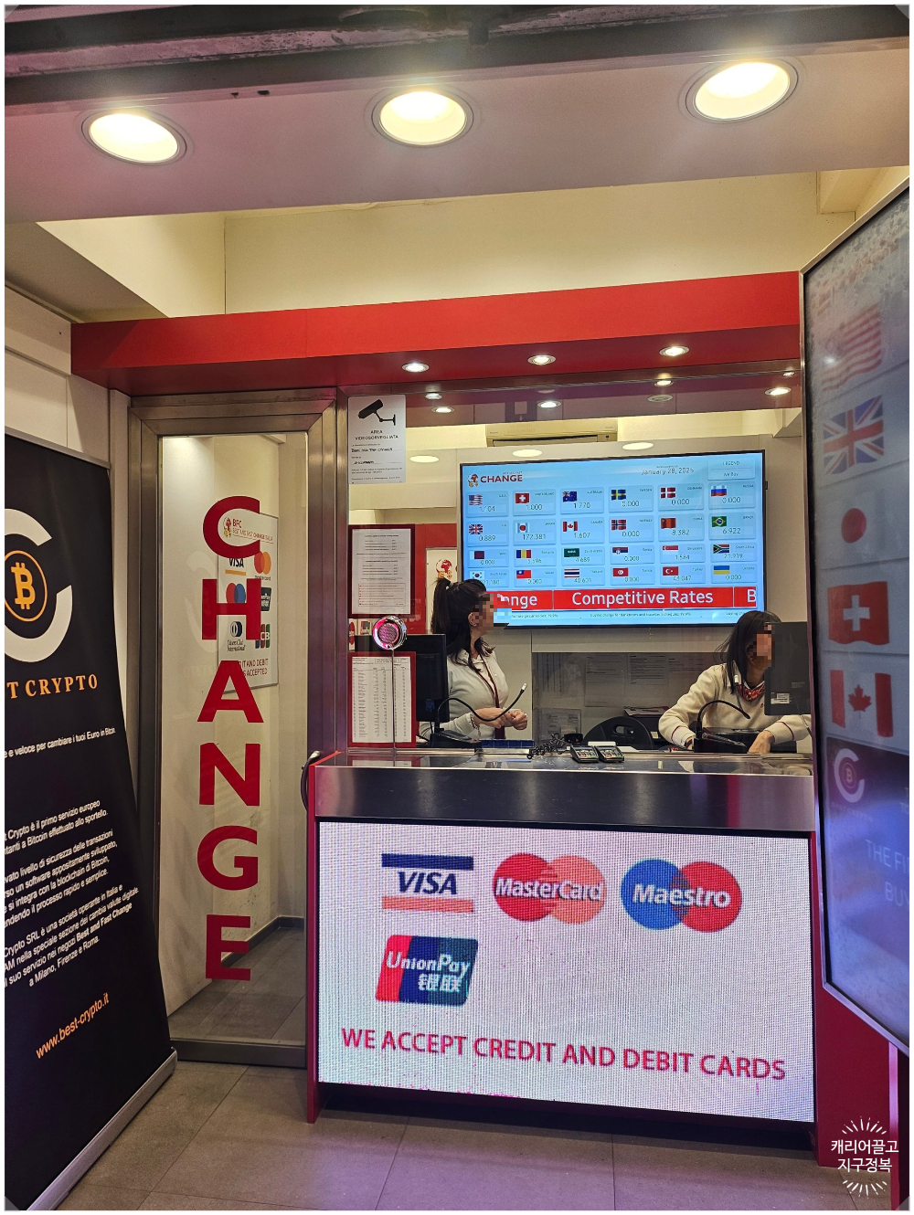 더보기이탈리아 환전소는 높은 수수료로 불리한 환율을 적용합니다. 유로화는 ATM에서 인출하는 것이 더 유리하며, 고정 수수료와 비율 수수료를 고려해야 합니다. 자세한 건 본문 읽기 안녕하세요, 캐끌지정입니다. 저희 가족도 그렇지만,대부분의 사람들은 해외여행을 가시면 약간의 현금, 달러를 지갑에 넣어서 갑니다. 혹시나 모를 비상상황에 대비하여, 신분증도 하나 챙겨가죠. 그런데, 이탈리아 여행을 간다면 유로화를 챙겨가시나요? 저는 유로화를 준비해 가는 것이 귀찮아서,집에 있던 달러를 가져가서 필요하면 바꿔쓰겠다고 생각했는데요, 이게 큰 오산이었습니다. 이탈리아에도 길거리에 환전소가 많이 있습니다. 이런 사진과 같이,관광 명소에는 환전소들이 많이 있는데요, 이런 곳에서 여러분이 100달러를 주고 유로..